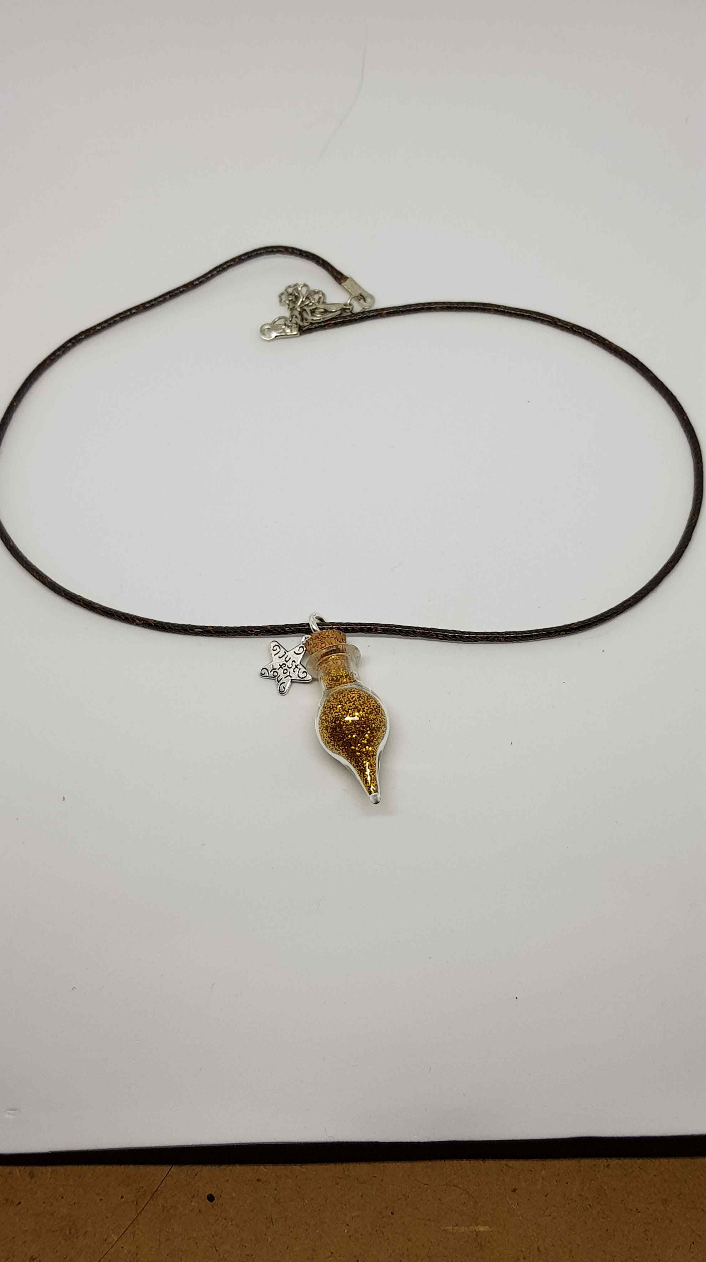 Pixie Magic Glitter Jar Pendant Gold with Black Cord, Silver 'Just for You' Star